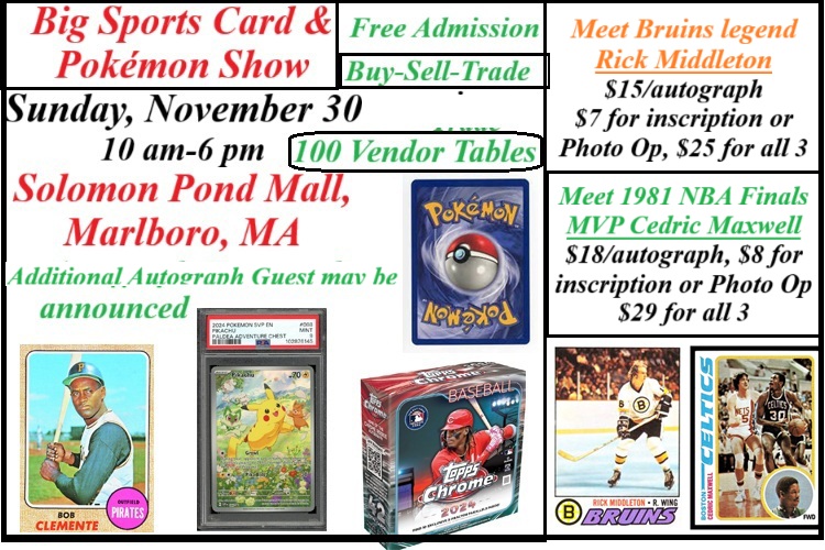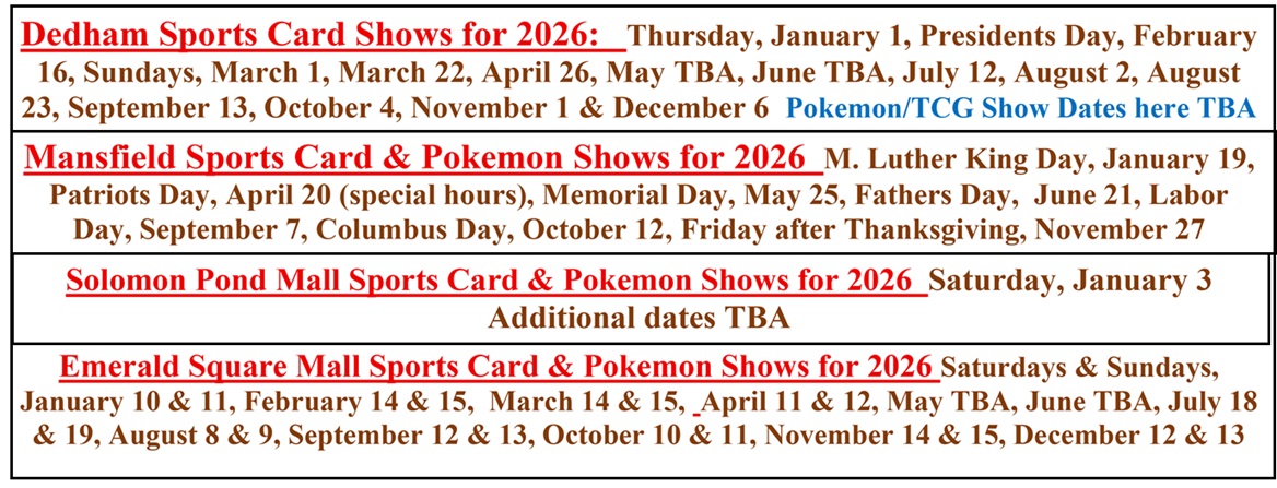 Saturday & Sunday, December 13 & 14 at the Emerald Square mall North Attleboro - New England's Biggest Free Admission Card Show
