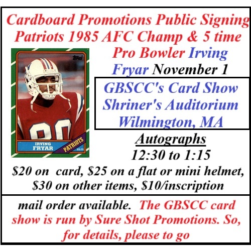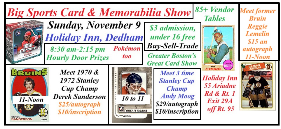 Sunday, December 7 Sports Card & Memorialia Show at the Holiday Inn in Dedham with boxing legend Gerry Cooney as 1 of the autogaph guests