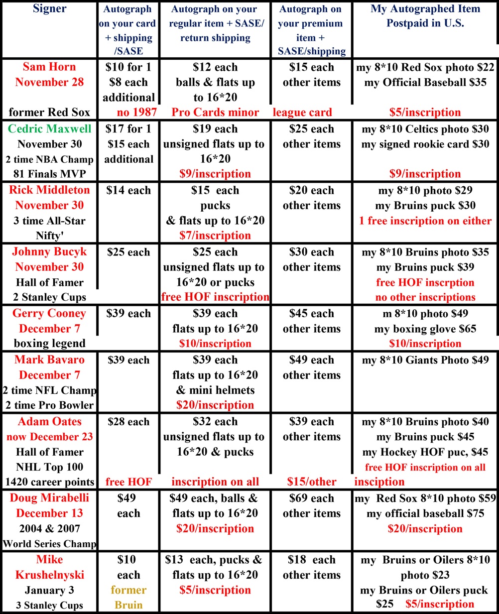 Orders from my Andy Moog signing mailed out Frisday, November