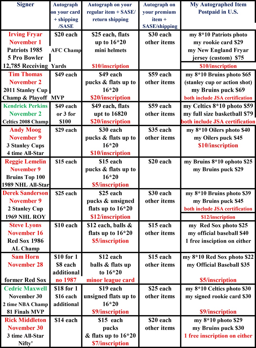 signings mailed out Tuesday, October 9. Orders from my Tim