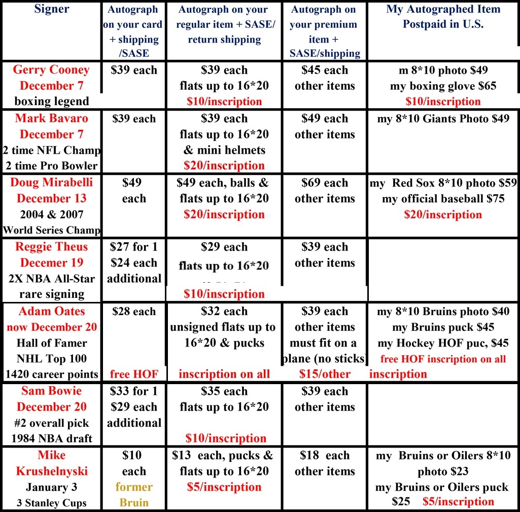 Derek Sanderson signing rescheduled to Friday, November 28.