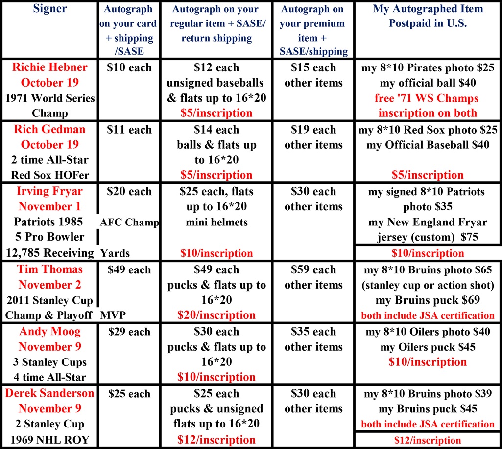 signings mailed out Tuesday, October 9. Orders from my Tim